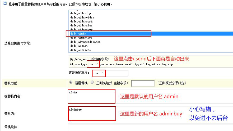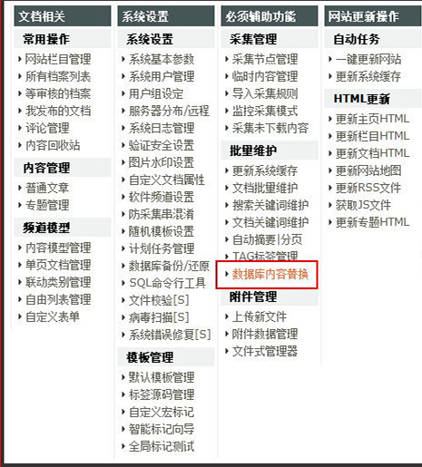 (如果你是VIP,隐藏了這一鏈接,大家隻要直接輸入鏈接即可:sys_data_replace.php    如:http://www.50xx.cn/dede/sys_data_replace.php)